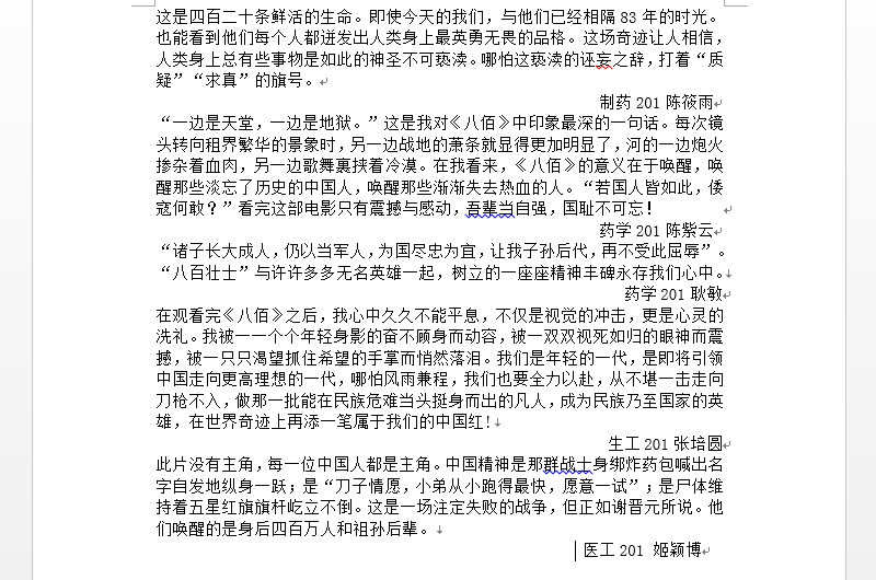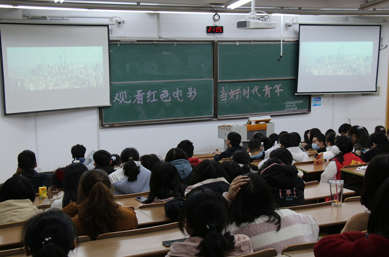首先,韦正同学简单介绍了此次活动的目的。紧接着,韦正同学为同学们播放了此次红色电影——《八佰》。电影《八佰》讲述的是1937年淞沪会战末期,中国国民革命军第88师524团留守上海四行仓库,与租界一河之隔,“八百壮士”与日军奋战四昼夜,造就了罕见的被围观的战争。随着电影情节的深入发展,现场的部分同学也因为战士们的英勇殉身而落泪。电影播放结束后,曹梦怡同学呼吁青年学习社的社员们铭记历史、缅怀先烈,不忘初心,砥砺前行。