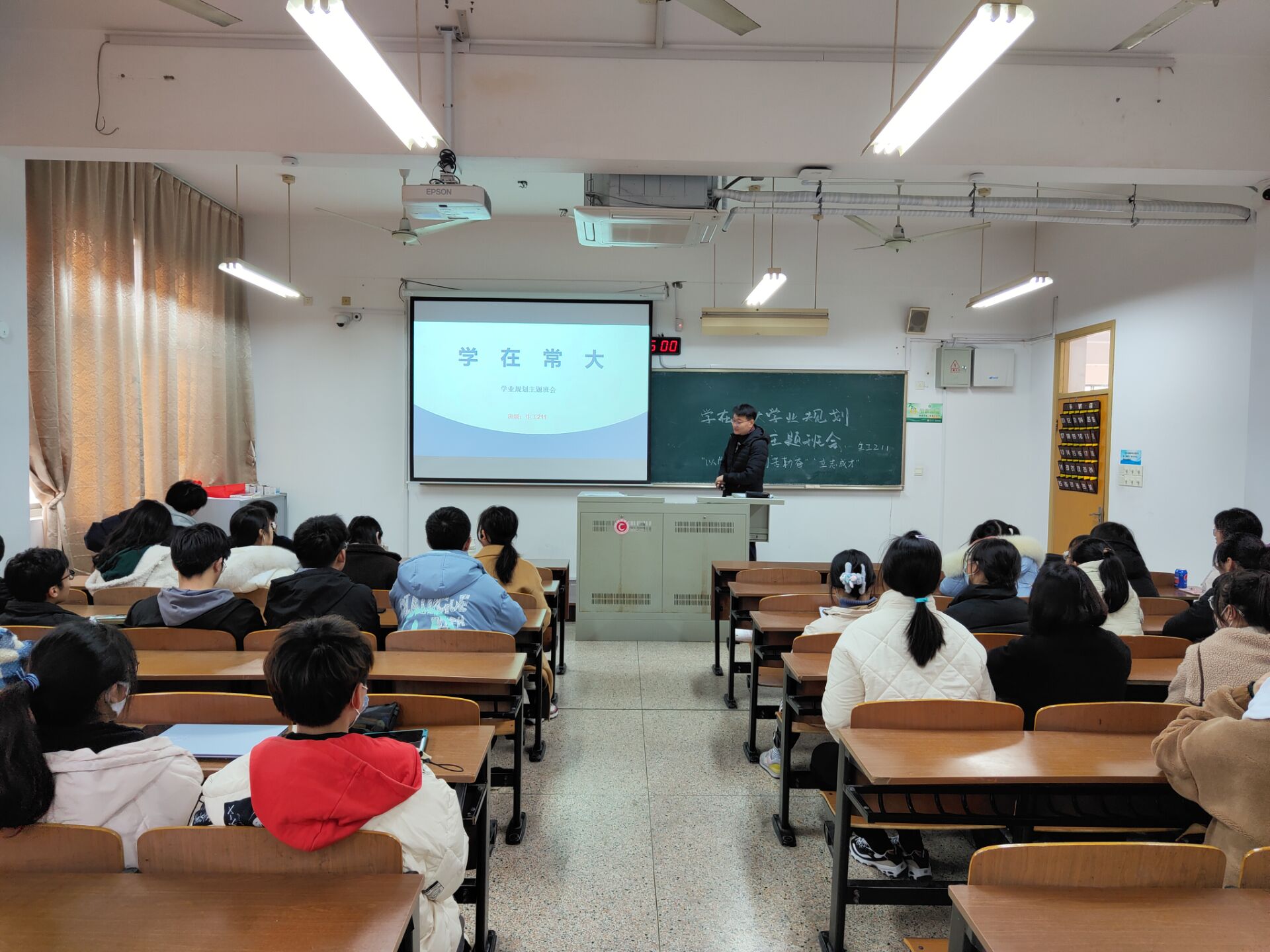 主题班会内容以大学生如何做好学业规划为主,结合当下学科学习展望专业就业前景。针对所学专业,各班班主任纷纷强调了规划未来对学生的重要性和必要性,要求同学认真学习,端正在校学习状态,明确自己的学习目标以及学业规划。除此之外,老师还提到了考研考证以及大学英语四六级等相关内容,鼓励同学积极备考。在各班的有序组织下,学业规划主题班会的开展顺利结束。