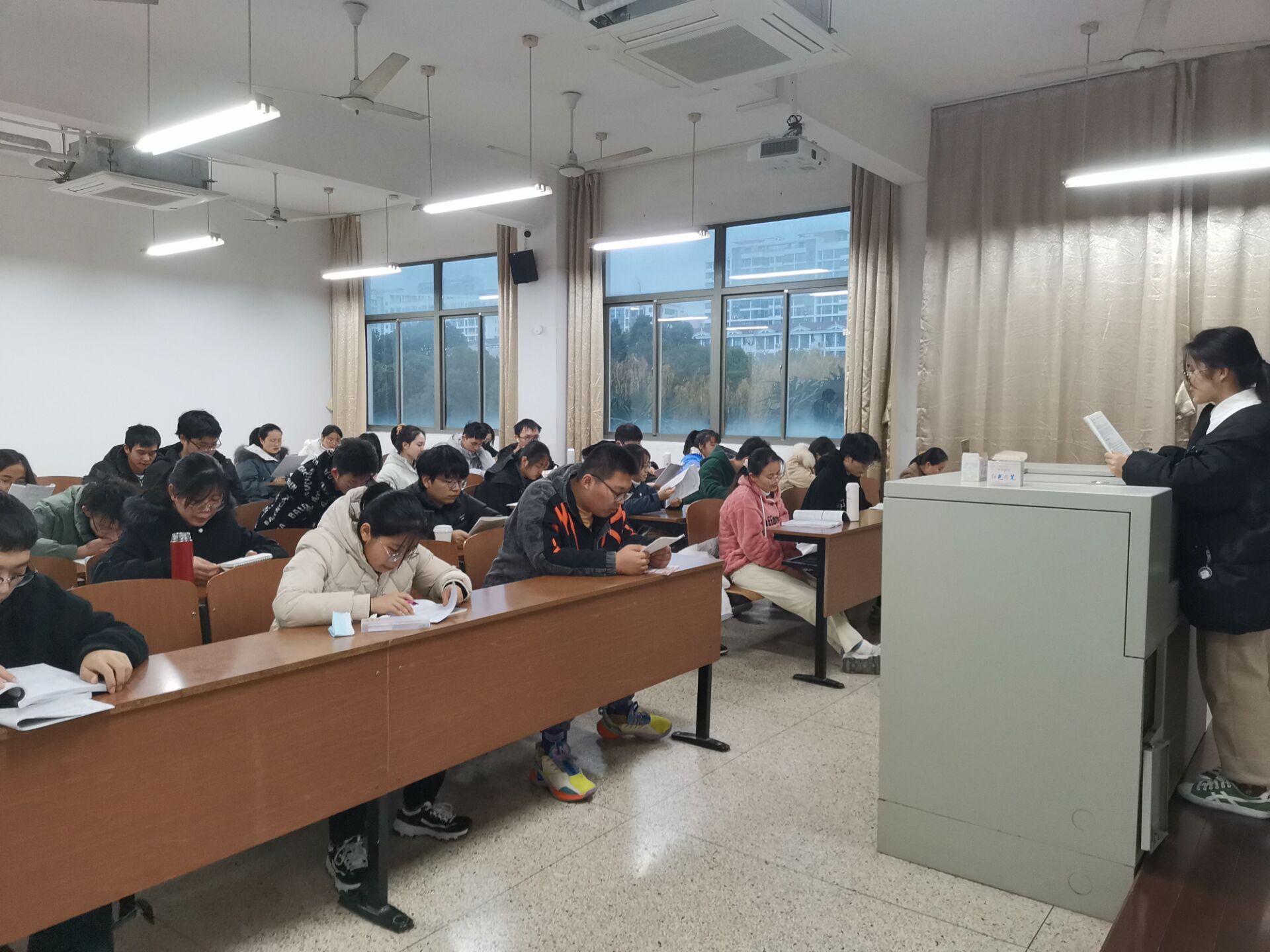 晨读活动的主要内容是由各班根据情况自行背诵四级复习资料或者上课知识重点,为四六级考试以及期末考试做准备。在清晨,同学们准时到达教室,拿出自己的材料,他们捧着书本,书声琅琅,每一位同学都放声朗读,脸上洋溢着求知的笑容。同学们坐姿端正,声音洪亮,精神饱满,营造了浓厚的读书氛围。
