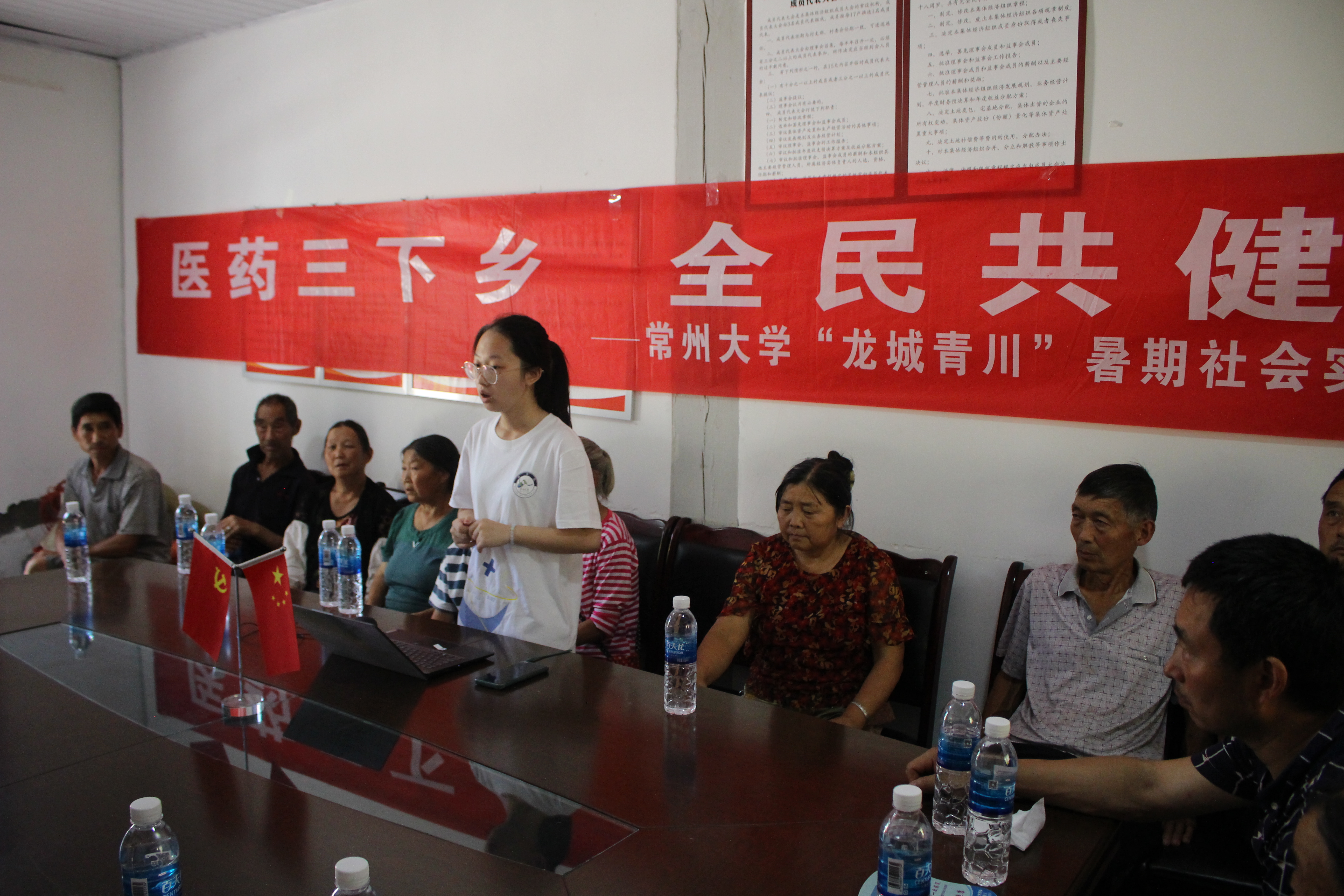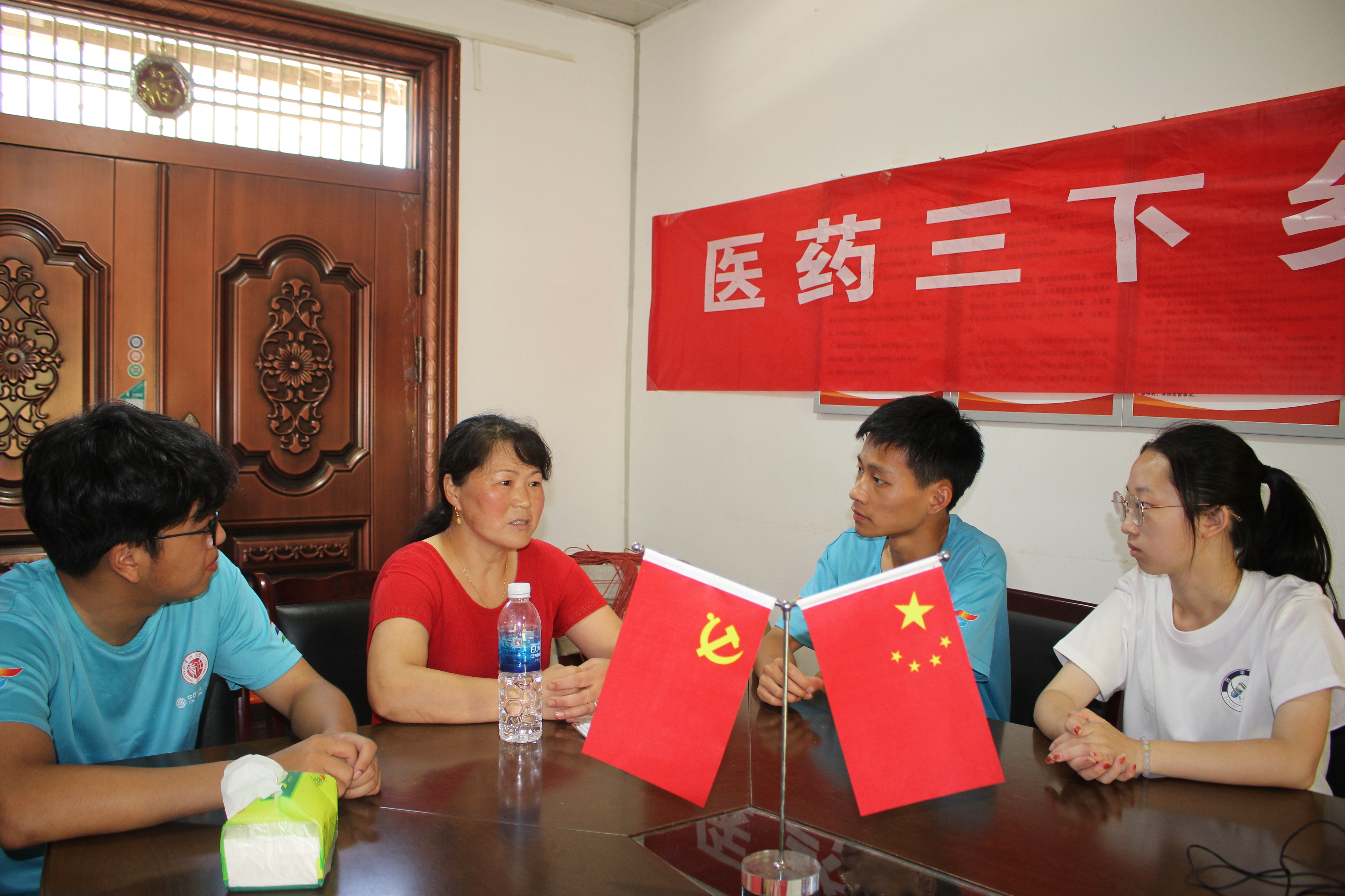 当天下午,队员们来到骑马乡村委会,村委会主任热切欢迎ok138太阳集团中国官方网站实践小队的到来。村主任介绍了村中情况,村中人均年龄已到达五十岁,且八成为空巢老人。老人们缺少卫生常识,经常出现“有病不去治、病急乱投医、保健品当药”等事情。针对这些情况,队员发挥医药专业优势,为老人们科普了健康卫生知识。会后,村主任表示“你们千里迢迢来到我们水磨村,为水磨村的老人们进行健康知识宣传是十分难得且可贵的,这对我们提升乡风文明,促进乡村公共服务做出了努力。”