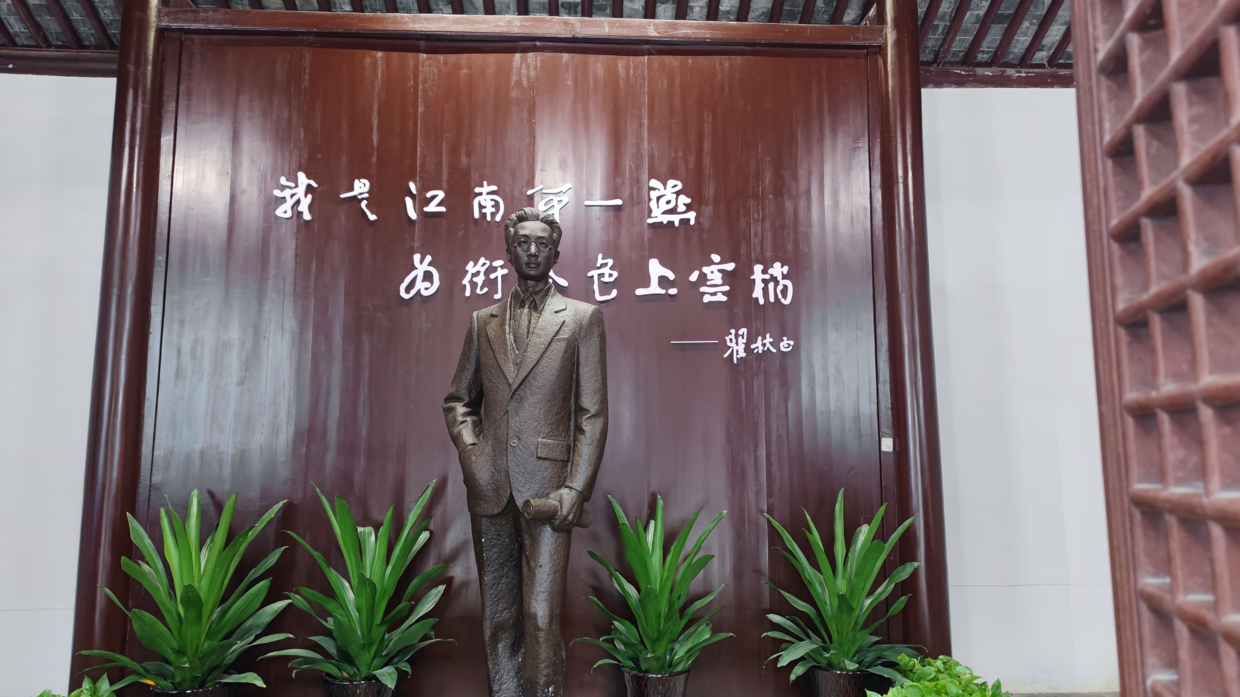 “我是江南第一燕,为衔春色上云梢”——瞿秋白纪念馆作为著名的红色历史文化景点,自具清冽严肃的基调。在两位实习团副的讲解下,大家沿着石板路细细感受着历史故事里的烽火峥嵘。纪念馆中收藏陈列着丰富的有关瞿秋白先生的生平和思想的照片、实物、文献和研究资料。仰观瞿秋白先生的塑像,大家不禁思绪翻飞,在那个硝烟与斗争共存、希望同压迫交织的年代。瞿秋白先生怀揣大义,上下求索而救民族于水火之间,将一切献给了党和国家。
