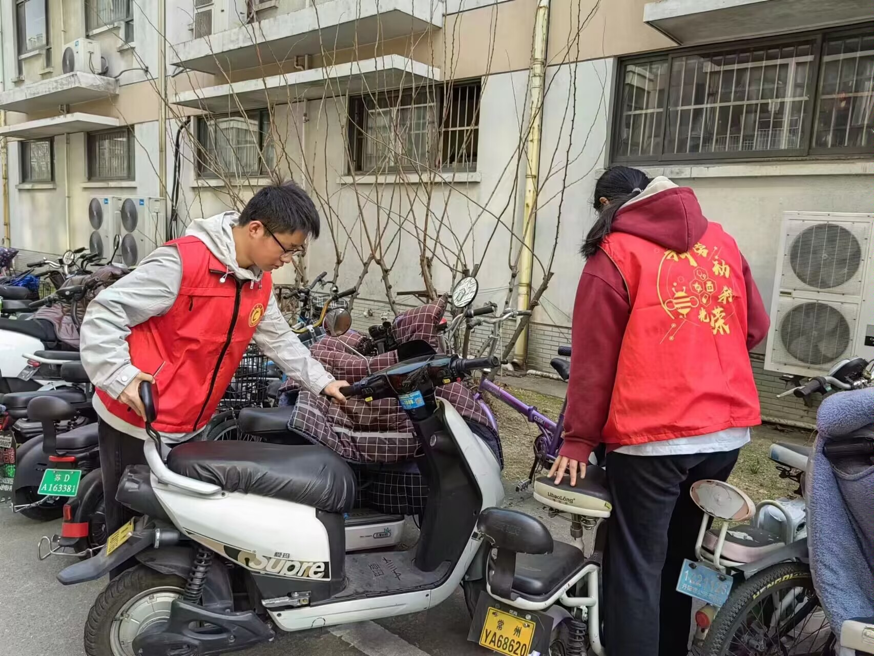 第三支小队主要由院学生组织骨干陈钰和费琴雨同学带领,与其他积极参加的同学们一起在校园内进行志愿清理工作,主要内容包括帮助整理校园中的停放杂乱的车辆,擦拭校园垃圾桶和长椅等。校园内非机动车辆众多,且停放多有杂乱,严重影响同学们的正常行经。小队成员于是不辞辛劳,穿行于校园之中,将倒在地上的车辆一一扶起,并推进到指定且安全的停车区域,同时对停放杂乱的车辆,包括共享单车和共享助动车也进行了整理。同时,队员们还周边环境进行了清理,给同学们带来整洁环境的同时,也为校园文明建设贡献出自己的一份青春力量。