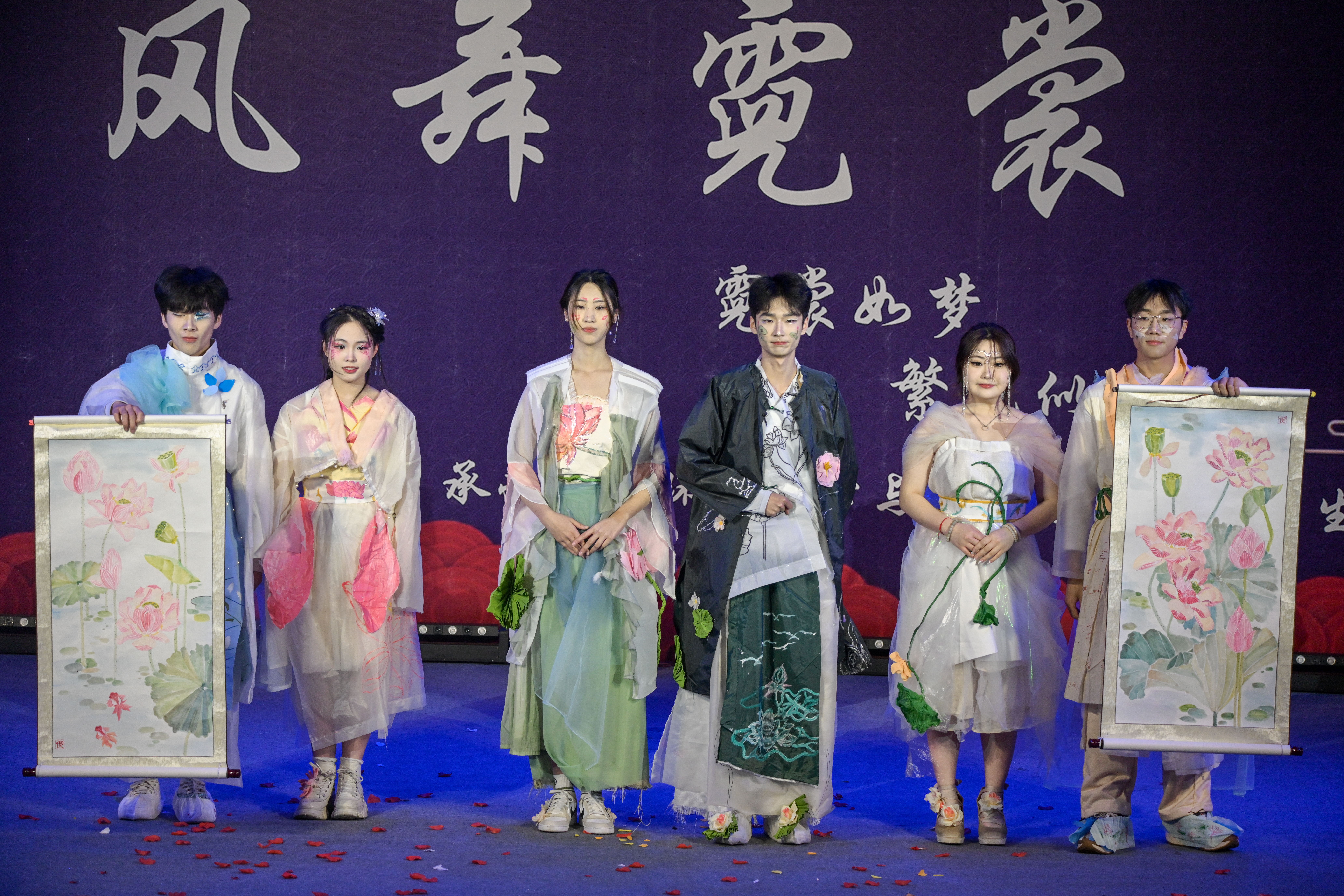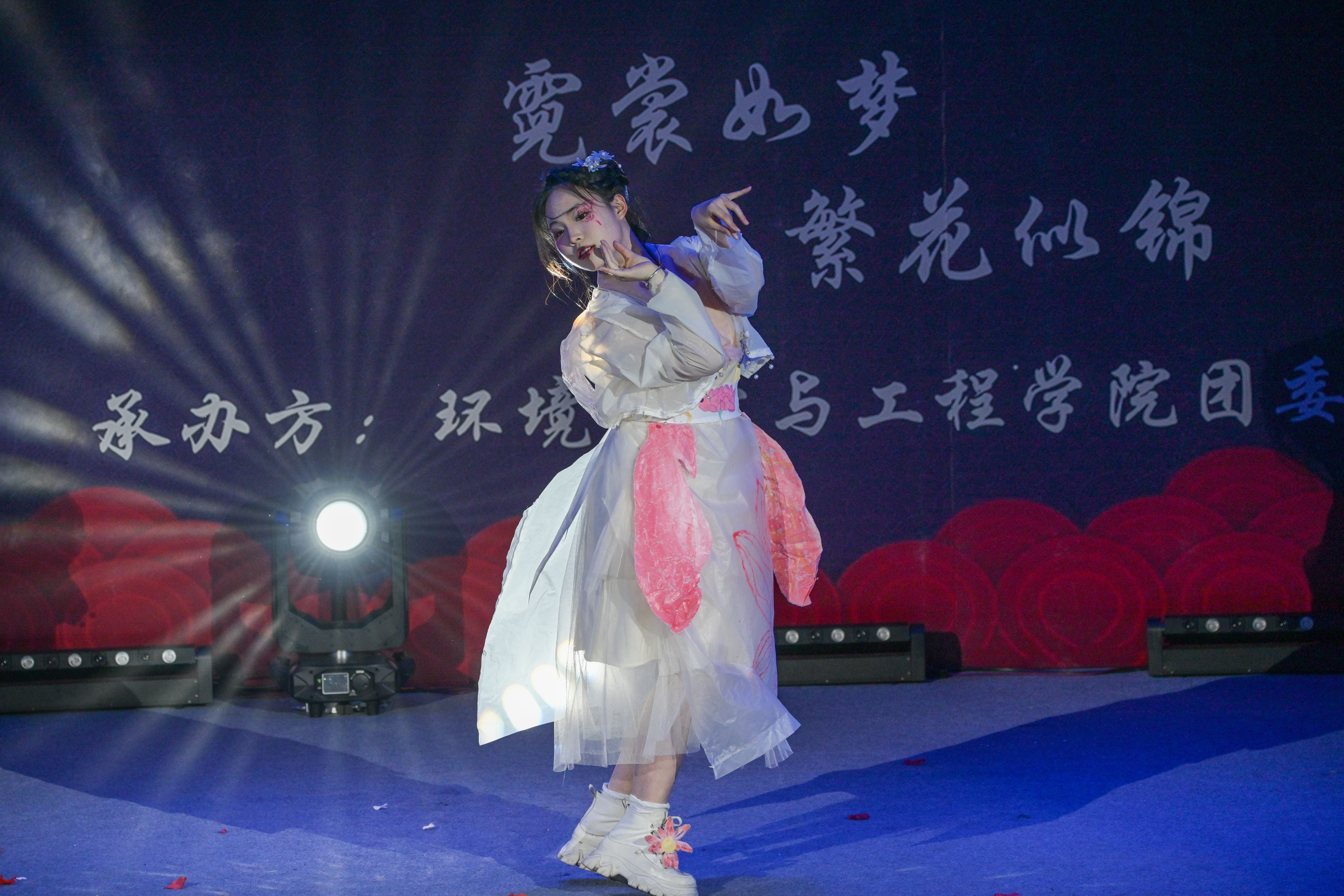 “山有扶苏 隰有荷华”——在一众红绿之中,荷花“出淤泥而不染,濯清涟而不妖”,格外吸睛。太阳官网以莲为主题,充分展现其清尘而出、洁身自好、卓尔不群的特点。模特们身着用回收材料制成的主题服饰,昂首阔步、莞尔自信走来,伴随灵动音乐,缓缓起舞,仿佛一池荷花随风而动。同学们出色的表演获得了认可和掌声。