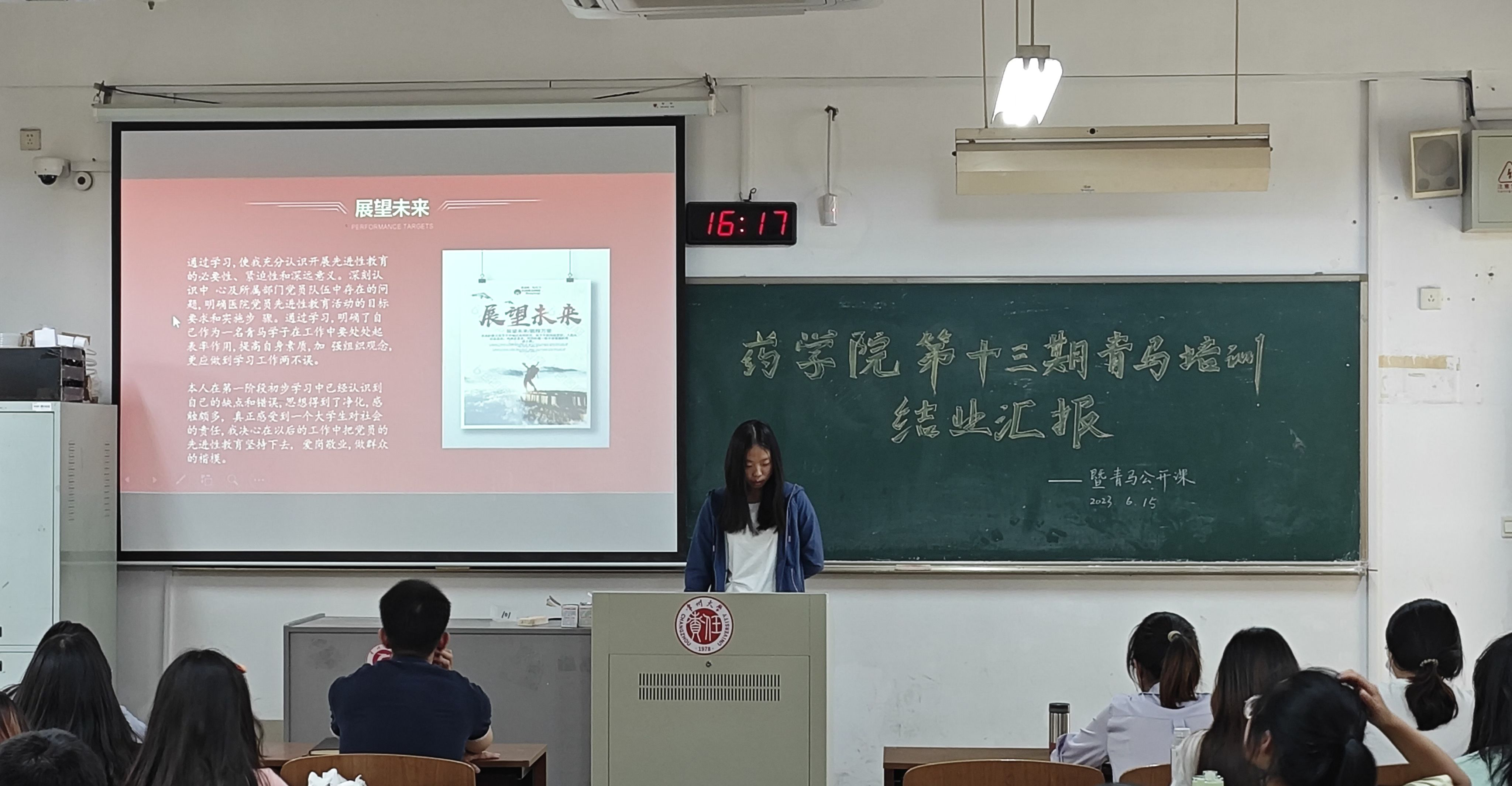 本次汇报以班级为单位,通过考察各班学院对青马课程的总结以及从本期青马学培训中所学习到的宝贵经验所得。本期青马培训共分为四次培训,培训内容涵盖理论学习、红色教育、志愿服务、素质拓展等方面,邀请我校田书记为青马学员作主题为“让青春在火热实践中绽放绚丽之花”的讲座,旨在让青马学员们懂得身为当代青年所肩负的时代使命,其次,邀请太阳官网优秀学生代表王宇慧同学向大家做“科教兴国”战略的主题演讲,旨在让青马学员们把握时代脉搏,更加明晰的了解国家战略,接着,开展参观“青果巷”历史街区社会实践活动和前往敬老院开展志愿服务,培训内容丰富,形式多样。食品221班在汇报中便提到“通过此次青马培训,作为一名大学生,我们的大学不该虚度,要积极参加各项活动,让自己的大学生活更加丰富多彩”,制药221班也在汇报中提到“志愿服务的开展有助于培养责任与能力,还可以提升自身素质”。制药212班也提出“广大青年要保持“初生牛犊不怕虎”的拼劲和“长风破浪会有时”的韧劲,以一往无前、舍我其谁的奋斗姿态,主动担当作为,真正在新时代的潮头乘风破浪、奋力前行。”在各班的汇报中,有一句话的出镜率非常高,那便是“青年兴则国家兴,青年强则国家强,青年一代有理想,有担当,国家就有前途,民族就有希望”。这段话出自习总书记在“五四”青年节中寄予广大青年的一句话。历史早已证明,青年始终是我们社会中最积极、最活跃、最有朝气的重要力量。振兴中华的史册,记载着中国青年牺牲奉献的光荣;民族复兴的使命,激荡着中国青年砥砺奋进的豪情。