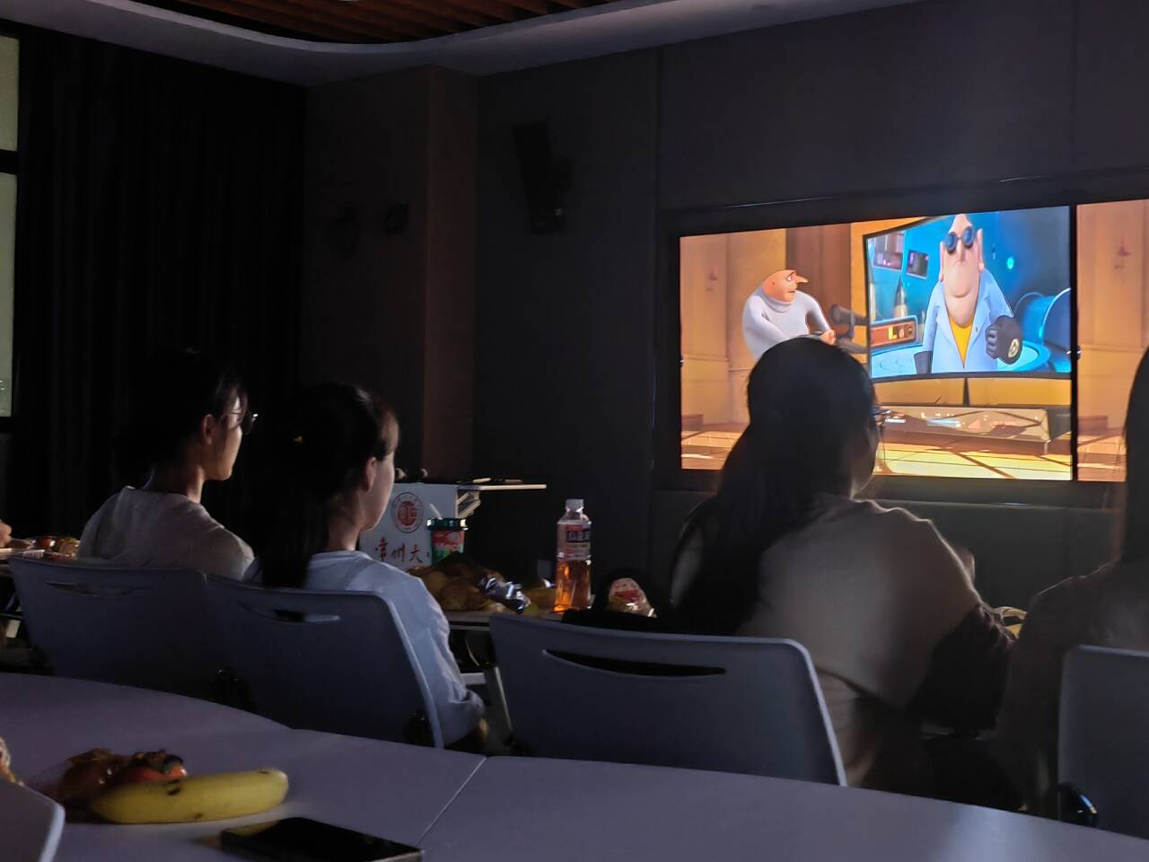 愉快的游戏之后,大家一起观看温馨影片《神偷奶爸》。观影期间,学生们依偎在座位上,一同欣赏着精彩的剧情,静静的享受电影的带来的视听盛宴,共同度过了一个温馨而难忘的夜晚。